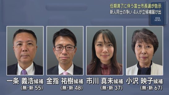 新人4人が立候補を届け出…静岡・富士市長選始まる さっそく市内で声枯らす